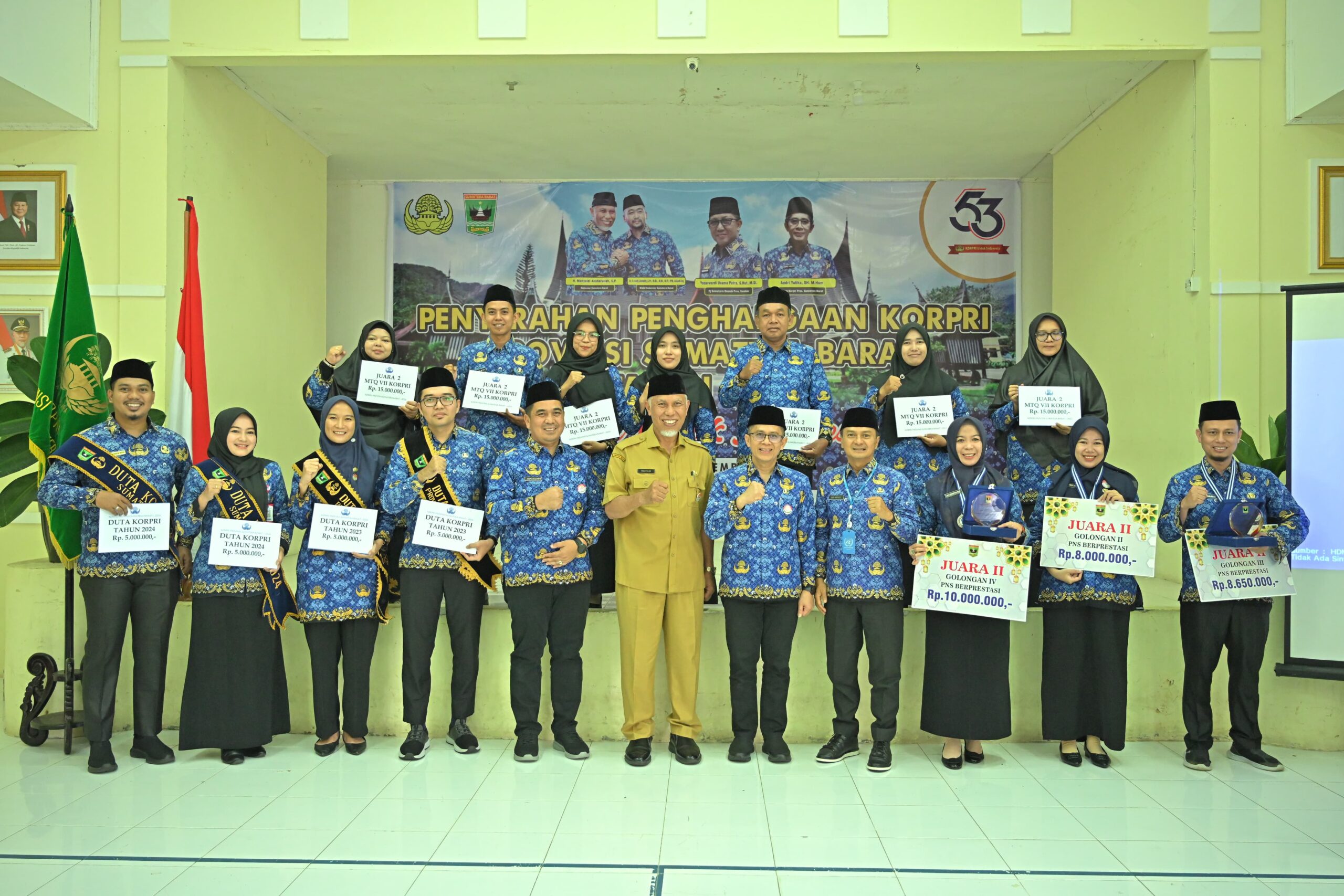 Ada pun dalam kesempatan itu, Mahyeldi menyerahkan penghargaan dan bonus bagi Kafilah Korpri Sumbar yang berhasil mempertahankan status Juara Umum bagi Sumbar pada helat MTQ Korpri VII, Anggota Korpri Berprestasi pada Pornas Korpri XVI, PNS Berprestasi 2024, Duta Korpri Sumbar, serta Bantuan Pendidikan untuk Anak-Anak PNS Berprestasi.