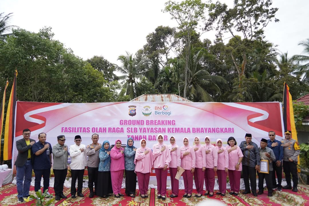 MMNews, Lintau Buo Utara, Prokopim- Bupati Tanah Datar Eka Putra, Ketua DPRD Anton Yondra, Ketua TP PKK Ny. Lise Eka Putra beserta Wakil Ketua TP PKK Ny. Dwinanda Ahmad Fadly menghadiri peletakan batu pertama pembangunan Gedung Olahraga (GOR) oleh Pengurus Pusat Yayasan Kemala Bhayangkari di SLB Yayasan Kemala Bhayangkari (YKB), di Nagari Pangian, Jumat (7/3/2025).