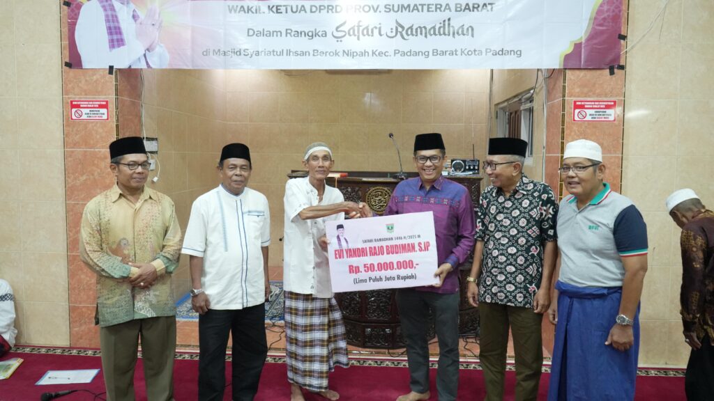 MMNews, Padang – Wakil Ketua DPRD Provinsi Sumatera Barat (Sumbar), Evi Yandri Rajo Budiman, kembali menyalurkan bantuan sebesar Rp 50 juta dalam kegiatan Safari Ramadan. Kegiatan tersebut berlangsung pada Sabtu malam (15/3) di Masjid Syariatul Ihsan, Berok Nipah, Kecamatan Padang Barat, Kota Padang, dan dihadiri oleh ratusan masyarakat. Evi Yandri menyampaikan bahwa bantuan ini diberikan […]