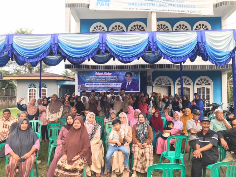 Limapuluhkota – Anggota DPRD Kabupaten Lima Puluh Kota, Marsanova Andesra, menggelar kegiatan reses masa sidang II yang dirangkai dengan buka puasa bersama masyarakat. Kegiatan tersebut dilaksanakan di Kantor DPD Partai Amanat Nasional (PAN) Kabupaten Lima Puluh Kota dan dihadiri lebih dari 300 peserta dari berbagai kalangan.
