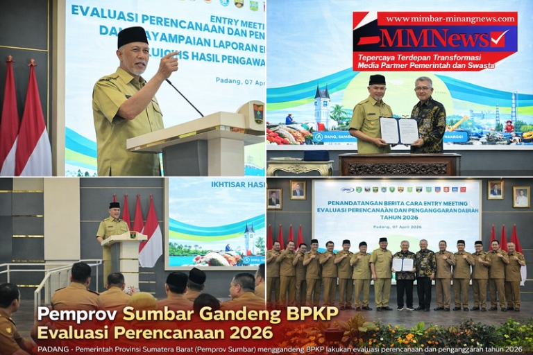 Padang, mimbar-minangnews.com — Pemerintah Provinsi Sumatera Barat (Pemprov Sumbar) menggandeng Badan Pengawasan Keuangan dan Pembangunan (BPKP) Perwakilan Sumbar untuk melakukan evaluasi perencanaan dan penganggaran tahun 2026. Langkah ini dilakukan sebagai upaya memperkuat tata kelola pemerintahan yang akuntabel, efektif, dan berorientasi pada hasil. Gubernur Sumbar, Mahyeldi Ansharullah, menegaskan bahwa evaluasi tersebut penting guna memastikan kualitas perencanaan, […]