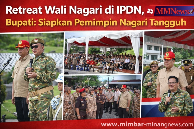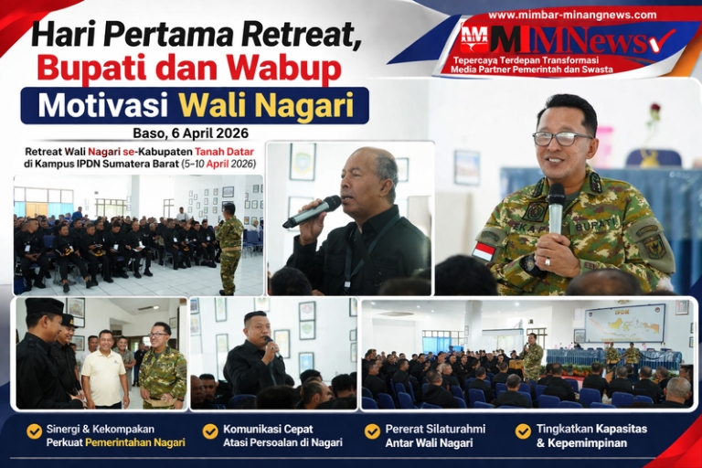 Baso, Mimbar-minangnews.com – Pelaksanaan retreat Wali Nagari se-Kabupaten Tanah Datar resmi digelar di Kampus IPDN Sumatera Barat, Baso, Kabupaten Agam, Senin (6/4/2026). Kegiatan ini bertujuan meningkatkan kapasitas aparatur nagari sekaligus menyiapkan pemimpin nagari yang tangguh dan berdaya saing. Rektor IPDN, Drs. Khalilul Khiri, M.Si, saat memimpin upacara pembukaan menyampaikan bahwa terdapat dua tujuan utama dari […]