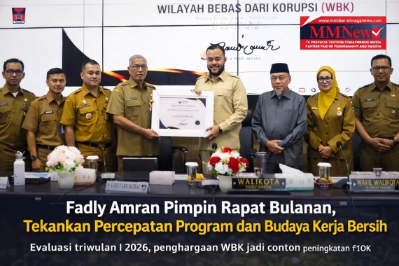 Padang, mimbar-minangnews.com – Wali Kota Padang Fadly Amran bersama Wakil Wali Kota Maigus Nasir memimpin rapat bulanan (monthly meeting) di Ruang Abu Bakar Ja’ar, Balai Kota Aia Pacah, Senin (6/4/2026). Rapat tersebut membahas evaluasi kinerja triwulan I tahun 2026 serta langkah percepatan pelaksanaan berbagai program prioritas Pemerintah Kota Padang ke depan. Kegiatan diawali dengan pemberian […]