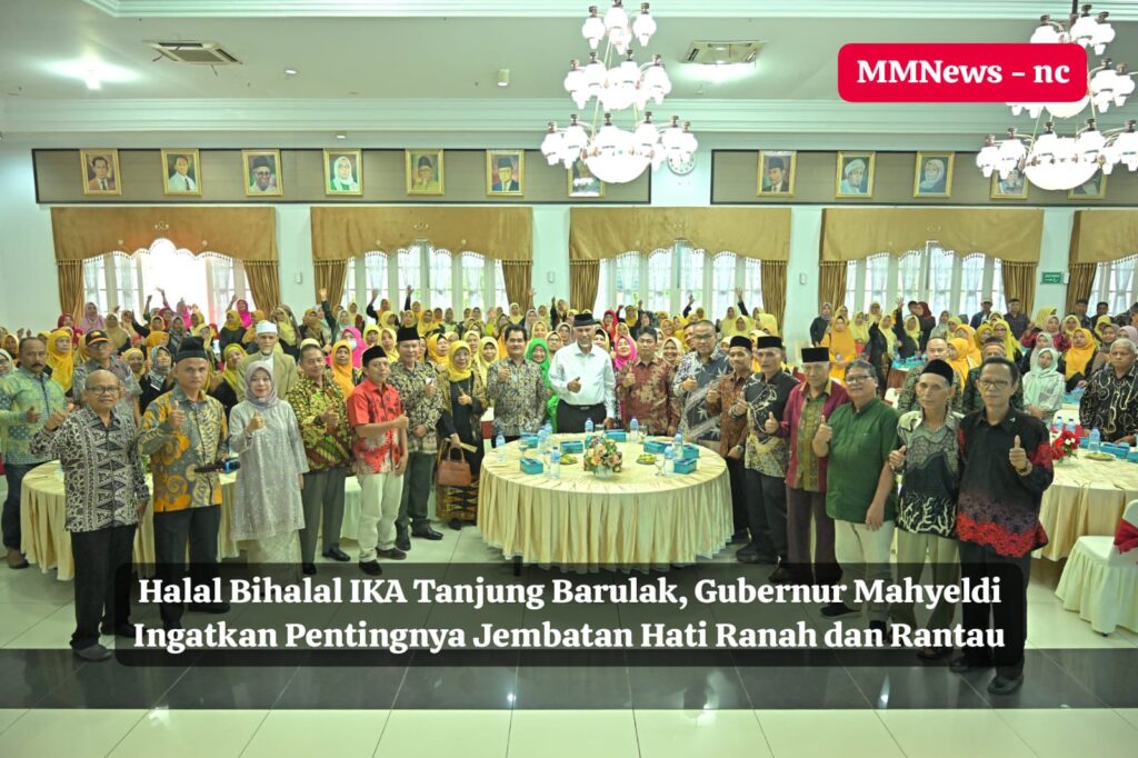 PADANG – MMNews – nc, Gubernur Sumatera Barat (Sumbar), Mahyeldi Ansharullah, menyatakan bahwa jembatan hati yang terbangun antara warga Minang di ranah dan di rantau akan berujung pada pesatnya kemajuan kampung halaman. Hal itu disampaikan Gubernur saat menghadiri acara Halal Bihalal Ikatan Keluarga Tanjung Barulak (Ikatab) Kota Padang di Auditorium Gubernur Sumbar, Minggu (9/6/2024).