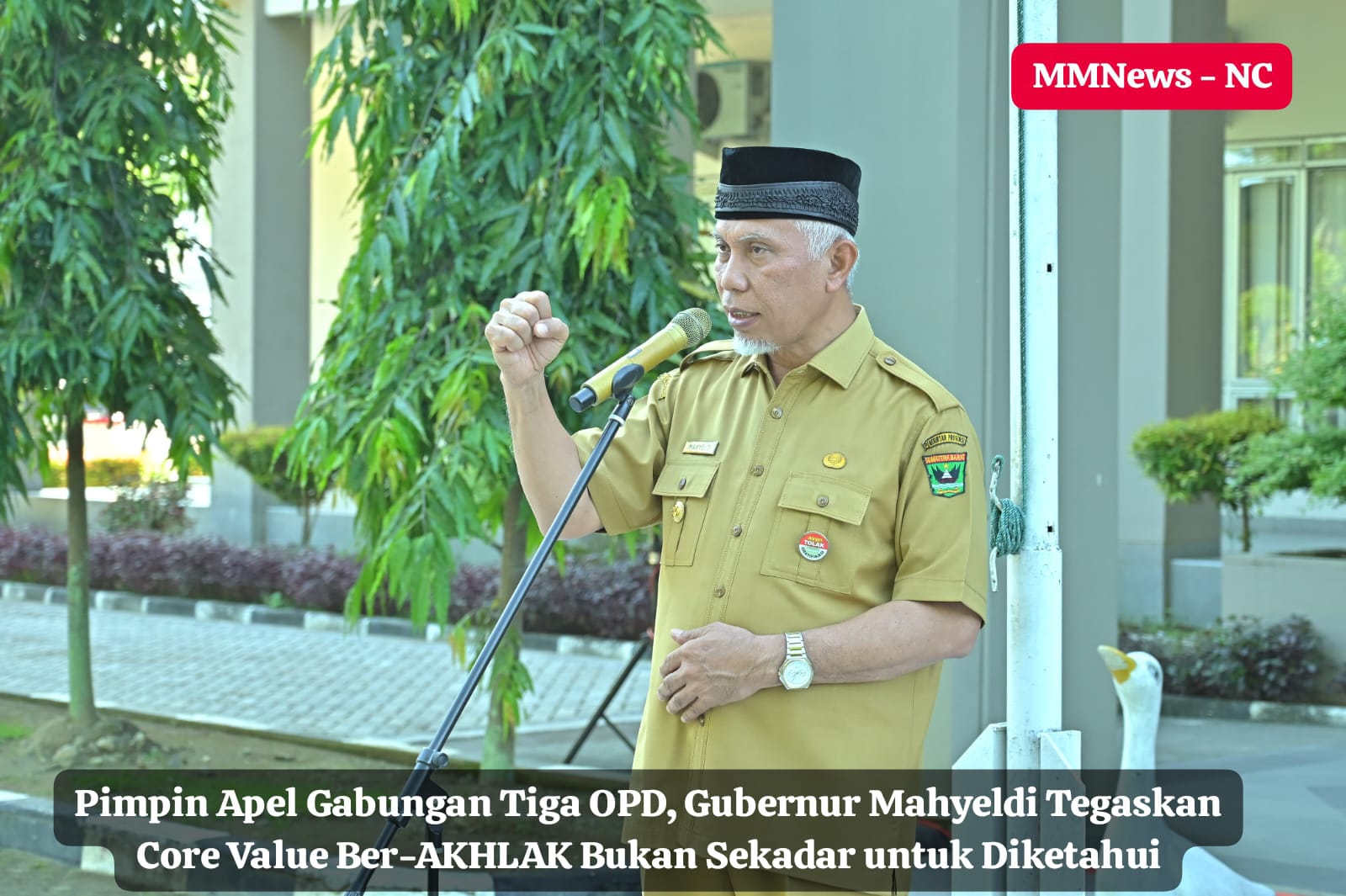 PADANG – MMNews – Gubernur Sumatera Barat (Sumbar), Mahyeldi Ansharullah, mengimbau seluruh ASN di lingkup Pemprov Sumbar untuk tidak sekadar membaca dan menghapal core value Ber-AKHLAK. Akan tetapi, setiap pribadi ASN harus memahami dan meingimplementasikan setiap nilai dasar itu sebagai basis dalam bekerja dan melayani masyarakat.