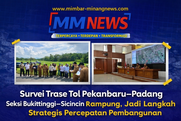 Bukittinggi, 14 April 2026 — Mimbar-minangnews.com — Pemerintah bersama para pemangku kepentingan melaksanakan survei bersama trase Jalan Tol Pekanbaru–Padang untuk Seksi Bukittinggi–Sicincin, Selasa (14/4/2026). Kegiatan ini melibatkan unsur pemerintah pusat, pemerintah daerah, serta instansi teknis terkait guna memastikan kesiapan perencanaan pembangunan infrastruktur strategis tersebut. Dinas Bina Marga, Cipta Karya, dan Tata Ruang (BMCKTR) Provinsi Sumatera […]