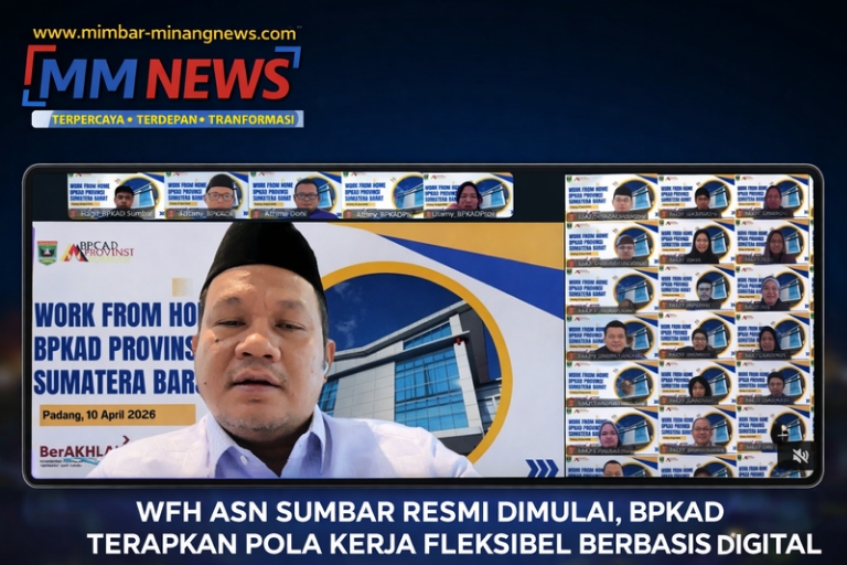 PADANG, Mimbar-minangnews.com — Badan Pengelolaan Keuangan dan Aset Daerah (BPKAD) Provinsi Sumatera Barat resmi melaksanakan kebijakan Work From Home (WFH) pada hari pertama, yang diawali dengan apel secara daring melalui Zoom. Kegiatan tersebut kemudian dilanjutkan dengan wirid rutin yang dilaksanakan setiap hari Jumat. Penerapan pola kerja ini merupakan tindak lanjut dari Surat Gubernur Sumatera Barat […]